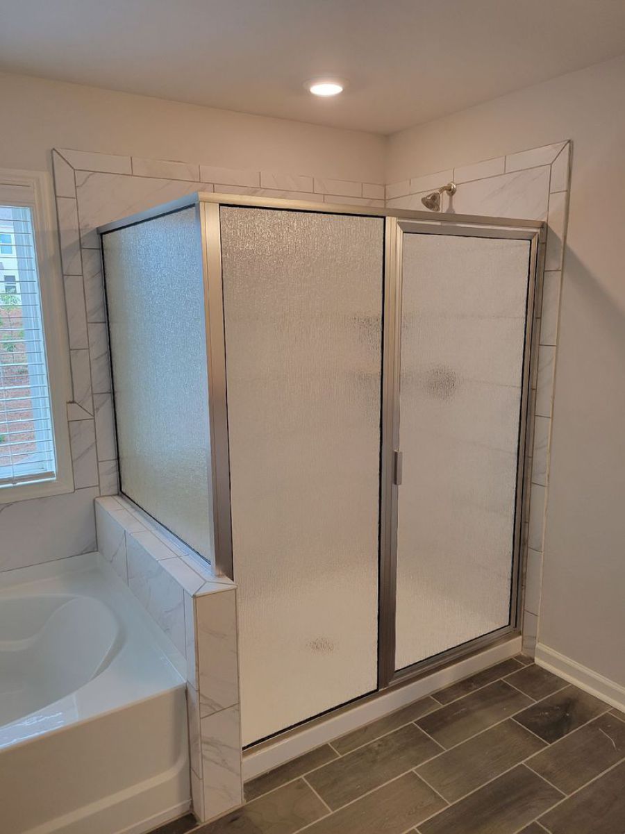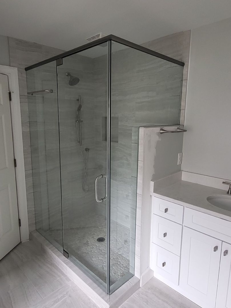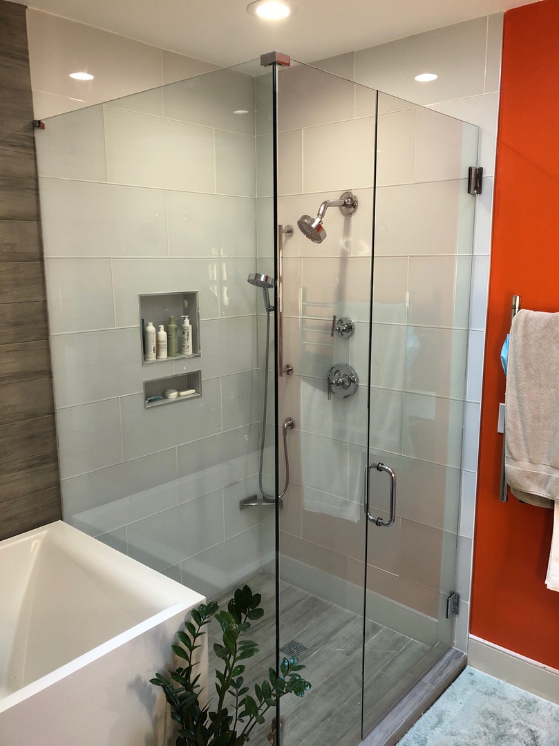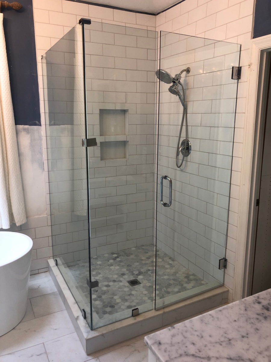 90-degree shower doors can be customized to be frameless, semi-frameless or framed while still offering the latest in glass trends!
