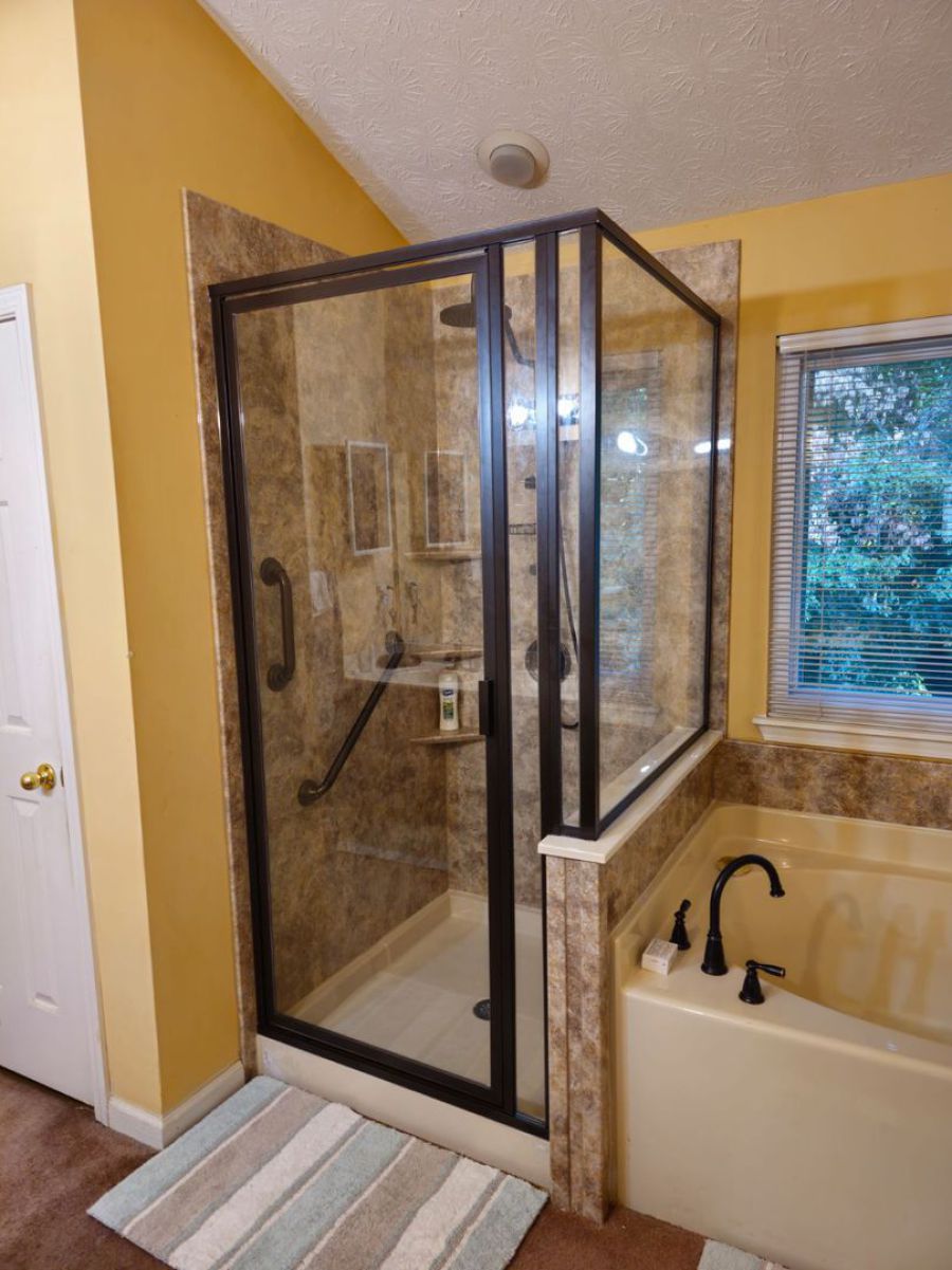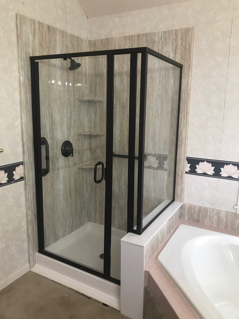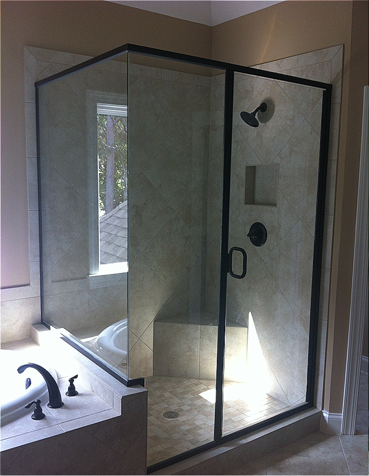 90-degree shower doors can be customized to be frameless, semi-frameless or framed while still offering the latest in glass trends!
