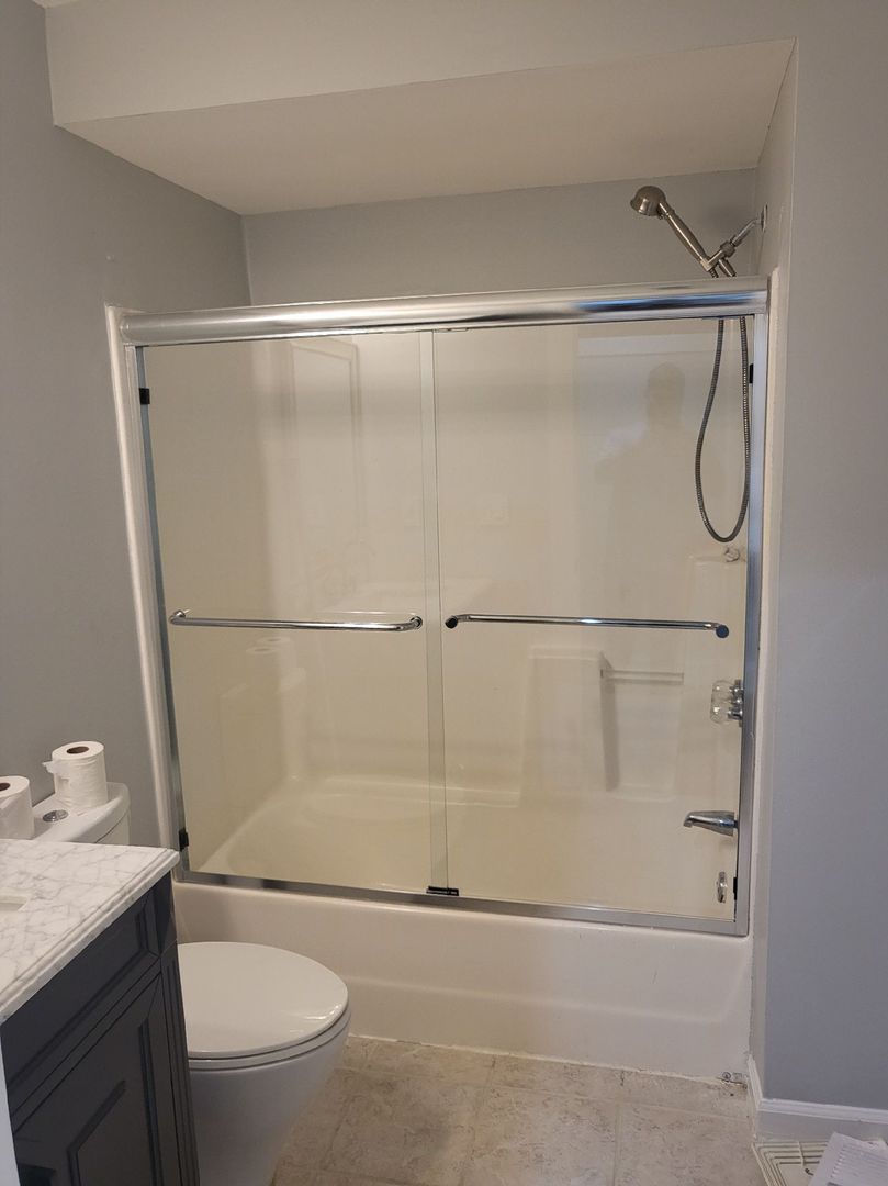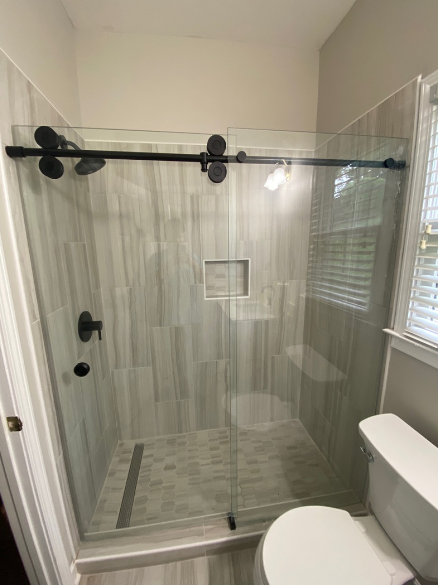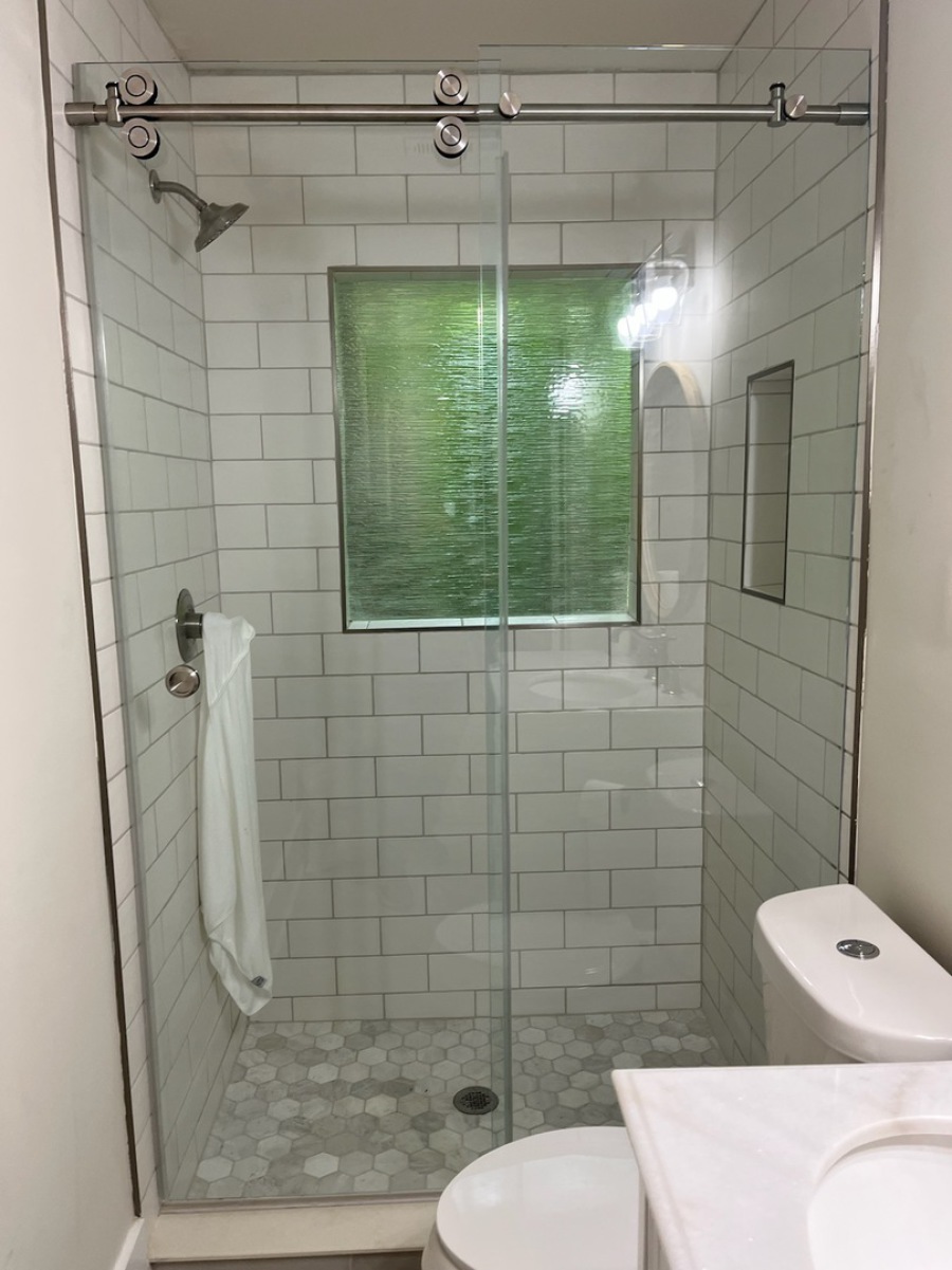 Like classic framed shower doors, sliding bypass glass doors are timeless! New sliding technology and enhanced non-corrosive aluminum materials have given a classic look a makeover. Sliding glass shower doors are economical, easy to install and give your bathroom a seamless upgrade, whether your bathroom has a shower, a bathtub or both. Discreet barnstyle designs & modern color effects on framed material give more options for all styles of bathrooms!