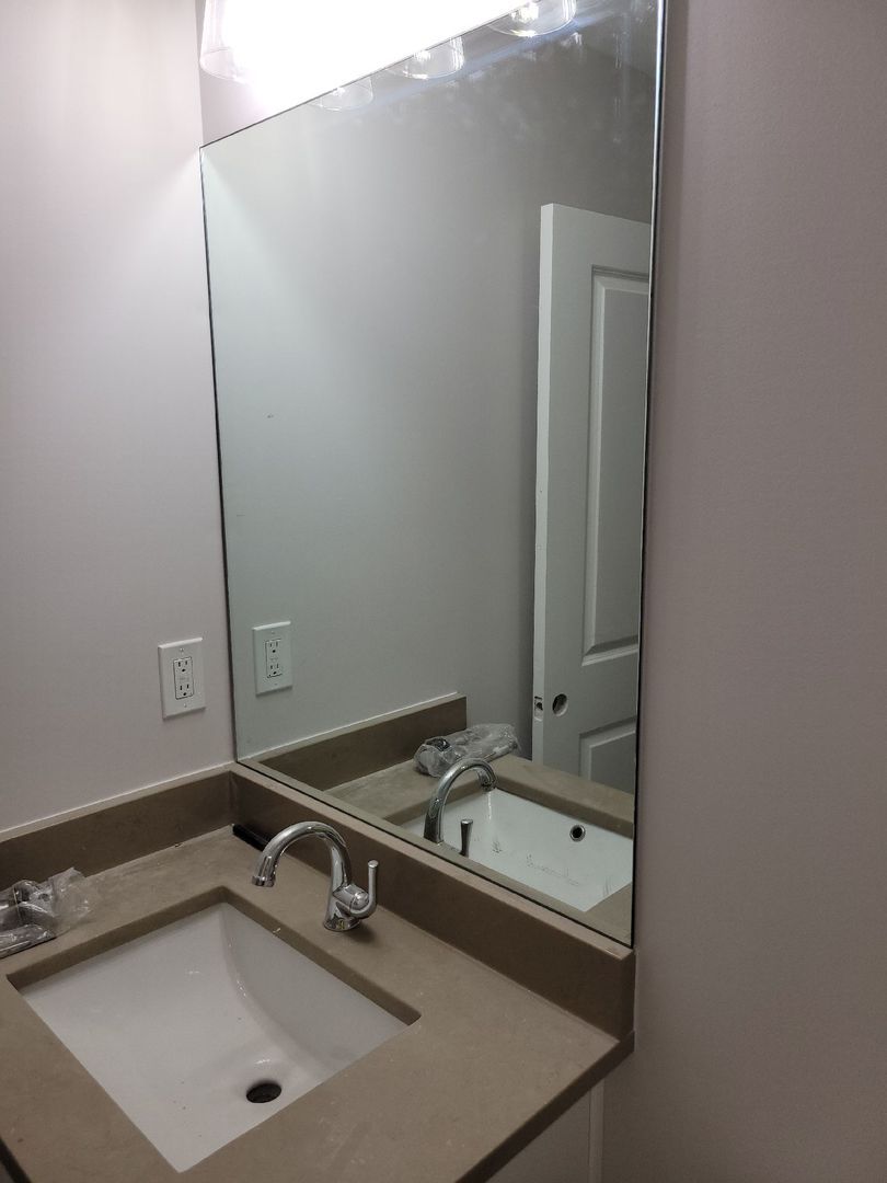 Full-height vanity mirror with polished edges, installed in Kennesaw, GA